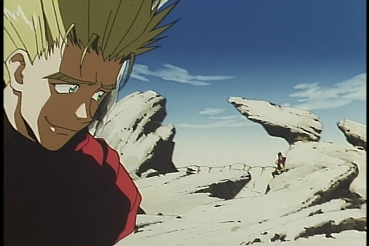 ![]() Триган [ТВ] [1998] Trigun Трайган トライガン Производство: Япония Жанр: приключения, комедия, драма, фантастика Тип: ТВ (26 эп.), 25 мин. Выпуск: c 02.04.1998 по 01.10.1998 Трансляция в 01:15 [ночной сеанс] на TV Tokyo Режиссёр: Нисимура Сатоси Снято по манге: Trigun Автор оригинала: Найто Ясухиро ![]() Описание: На пустынной планете, куда люди переселились с Земли, в пыльных городах, в салунах и на площадях, среди простых жителей и опасных бандитов давно ходит слух о человеке-катастрофе – Ваше Паникере. Он появляется ниоткуда и оставляет после себя развалины. Однажды он полностью уничтожил целый город. Говорят, он беспощаден, и его невозможно убить. За его голову назначена огромная награда в 60 миллиардов. А каковы убытки? Страховое агентство Бернарделли, похороненное под лавиной исков, посылает двух своих лучших агентов Мерил Страйф и Милли Томпсон с заданием: найти легендарного преступника и разобраться с возникшей ситуацией. Девушки справляются с первой частью, но остановить разрушительные действия Ваша они не в состоянии. На самом деле Ваш – добрый улыбчивый недотёпа, обожающий пончики. Он пытается нести окружающим философию «мира и любви», но его встречают пулями. Человек-Ураган делает всё, чтобы избежать насилия, но единственное, что ему удаётся – это предотвратить человеческие жертвы. В бою он превращается в хладнокровного воина, однако это не делает его счастливым. А по его следу идут безжалостные убийцы, всякий раз отнимающие у Ваша надежду на спокойную жизнь... © Расселл Д. Джонс, World Art
